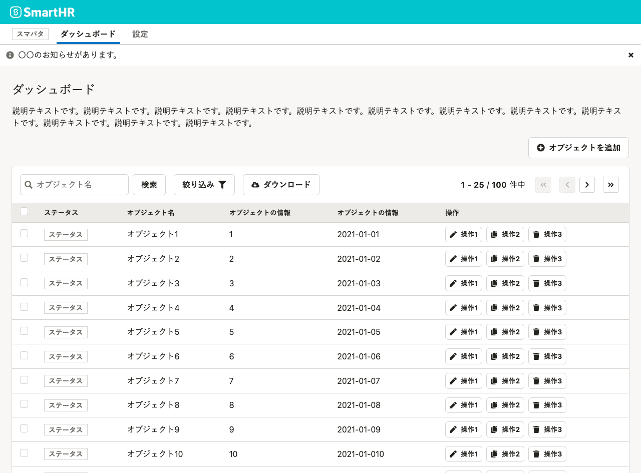 「ダッシュボード」の配下のみに関わる情報であることを表すために、AppNaviの下にNotificationBarを配置します。