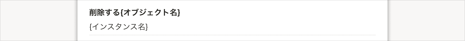 オブジェクト詳細画面で削除ボタンを押すなど、他のオブジェクトと取り違える可能性が明らかに低い場合、削除対象のインスタンス名を省略しても構いません。この場合、2. 本文は、